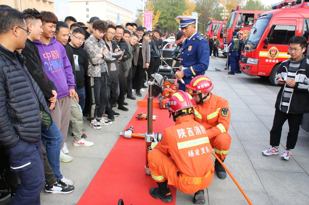11月7日下午,杨凌示范区2019年119消防安全宣传月启动仪式在我院醒钟楼广场举行。示范区党工委委员、公安局局长马卫东,示范区消安委成员单位以及我院师生代表共计1500余人参加了启动仪式。
