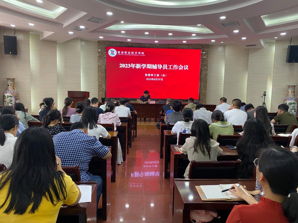 为推动2023年下半年学生工作顺利开展,8月29日下午,新学期辅导员工作会议在南校区水韵楼二楼报告厅召开。会议由学工部部长陈军峰主持,各二级学院学工办主任、全体辅导员及学生处相关人员共计120余人参加会议。