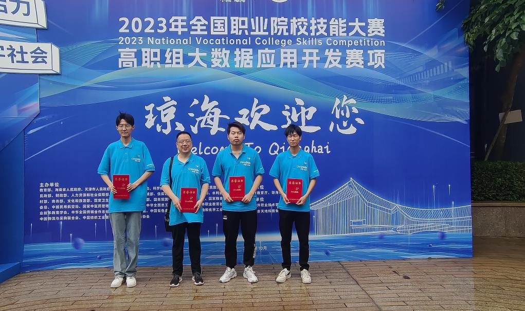 10月23日至24日,2023年全国职业院校技能大赛高职组“大数据应用开发”赛项在海南信息职业技术学院举办,共有来自全国31个省、自治区、直辖市的64支参赛队伍、256名参赛选手同台竞技。我校信息工程学院薛海斌老师和焦泽宇、李向阳、张亮亮三位同学组成的代表队荣获该赛项团体三等奖。