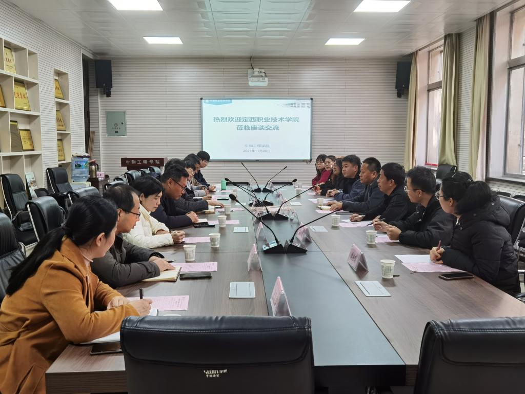 11月20日上午,定西职业技术学院副院长朱宏伟一行9人来校调研交流。副校长祝战斌,生物工程学院负责人及教师代表参加座谈。