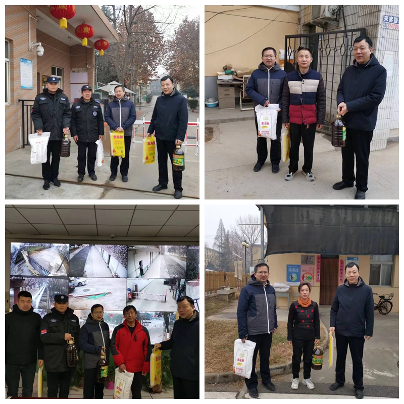 张朝晖一行先后深入三校区、家属院、农林实训基地、监控室,对门卫值守、校园巡逻、视频监控管理等情况进行检查走访,与安保人员亲切交谈,详细了解大家的工作、生活、身体状况和实际困难,叮嘱他们注意用电安全、防寒保暖、劳逸结合,并代表学校对大家坚守工作岗位、时刻保障学校安全和服务师生的辛勤付出表示感谢。