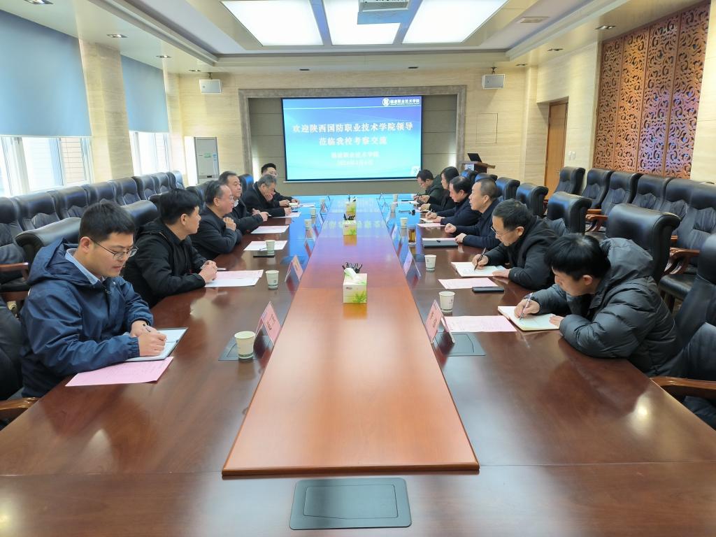 3月6日,陕西国防工业职业技术学院党委副书记杨聪一行6人来校考察交流。副校长胡俊鹏陪同考察并座谈。