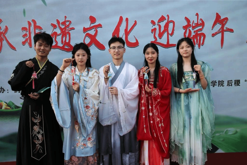 活动分为经典传承、拾趣端午、送福安康三个部分。学生们身着华服装,载歌载舞,庆祝中华传统节日。古典舞、汉服秀、经典诵读、健身气功八段锦表演等,为现场师生带来了一场中华经典文化的视听盛宴。