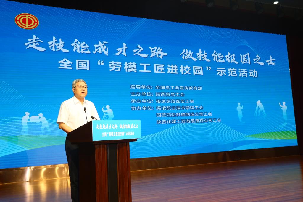 为持续推动全社会关心关注劳模工匠,掀起崇尚技能成才热潮,更好地引导职业院校学生树立技能报国之志,坚定理想信念,6月17日,以“走技能成才之路、做技能报国之士”为主题的2024年全国“劳模工匠进校园”示范活动走进我校。省总工会党组成员、副主席王永岗出席活动,杨凌示范区党工委委员、管委会副主任、总工会主席刘仲山致欢迎辞,校长仲伟周活动前会见了劳模工匠一行。党委副书记刘瑞明,副校长蒋平江、张朝晖参加活动。