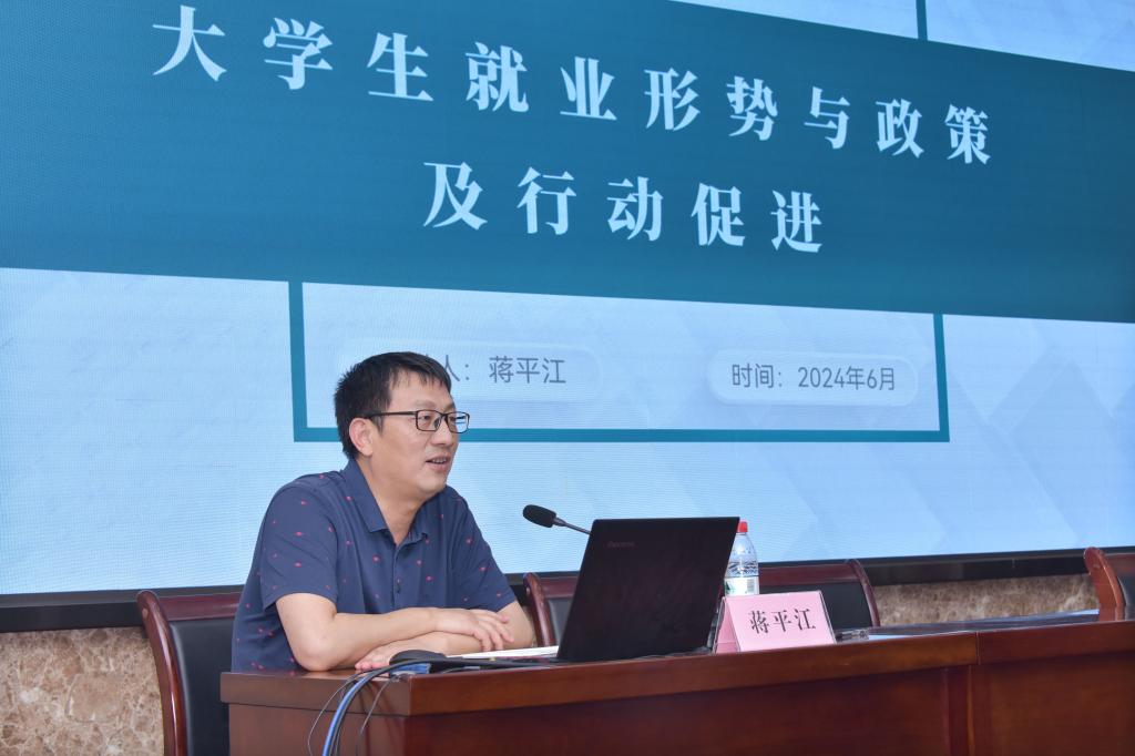 开班仪式上,蒋平江作动员讲话,他指出,“中央专项彩票公益金宏志助航计划”是教育部组织实施的高校毕业生就业能力培训项目,希望全体参训学员珍惜学习机会,充分认识本次培训的目的意义,切实增强就业的责任感与紧迫感,积极把当前的就业培训内容和自己的求职就业统一起来,进一步提高就业认知,强化就业心理,提升就业能力。随后,蒋平江为毕业生作了宏志助航计划专题报告会。深入剖析了当前的就业形势与政策,鼓励学生们树立正确的就业观,不断提升自己的综合素质和竞争力自身的兴趣和能力进行选择才能在激烈的竞争中脱颖而出。