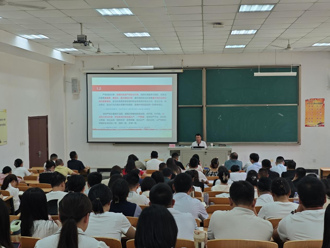 7月1日,党委副书记、纪委书记王勇胜为马克思主义学院党总支讲党纪学习教育专题党课,马克思主义学院党总支50余名教师党员参加党课学习。