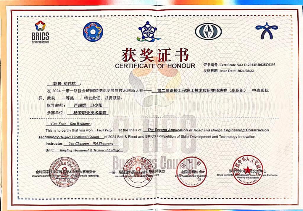 8月20至22日,2024一带一路暨金砖国家技能发展与技术创新大赛高职组“路桥工程施工技术应用”赛项在山东交通职业学院举行,共有来自全国178支高职院校代表队参加。我校交通与测绘工程学院道路与桥梁工程技术专业郭锋、苟伟航两名学生获高职组团体赛一等奖,严超群、卫少阳两名教师获优秀指导教师,学校获最佳组织奖。