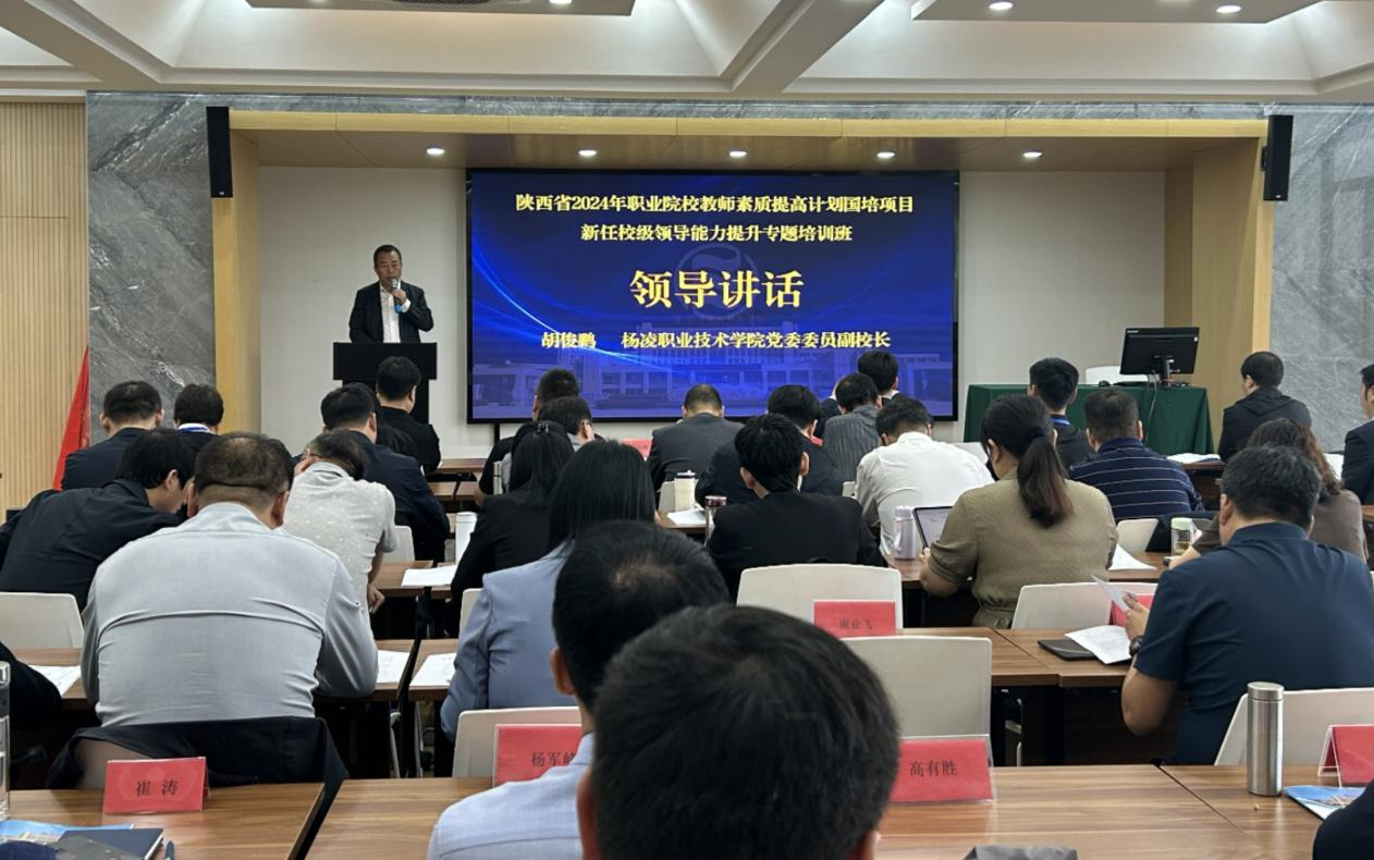 10月14日上午,由我校承办的2024年陕西省职业院校教师素质提高计划国培项目——新任校级领导能力提升专题培训班在南京开班。副校长胡俊鹏出席开班式并讲话。来自全省中职(中专)学校及职教中心领导共60余人参加培训。