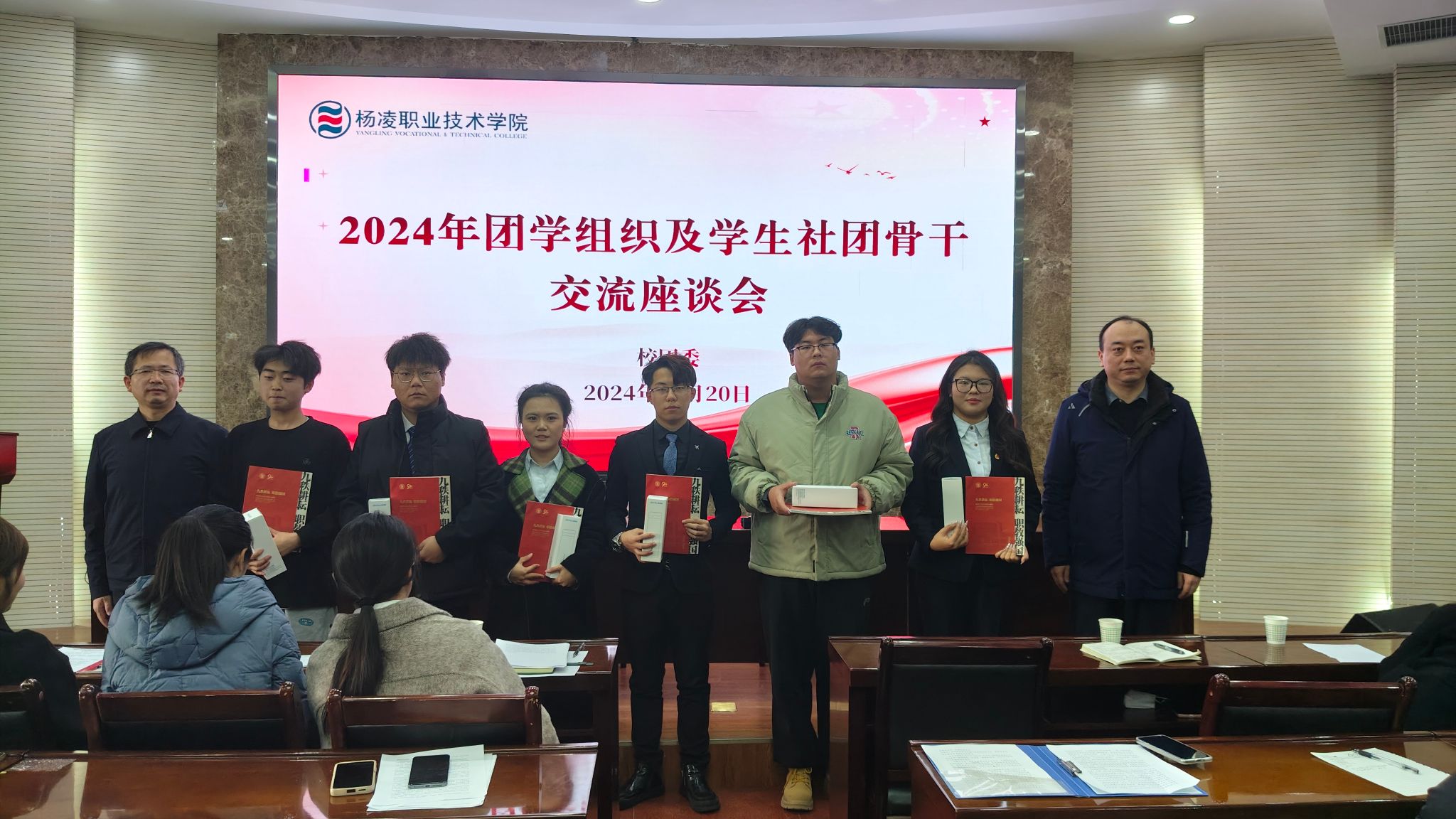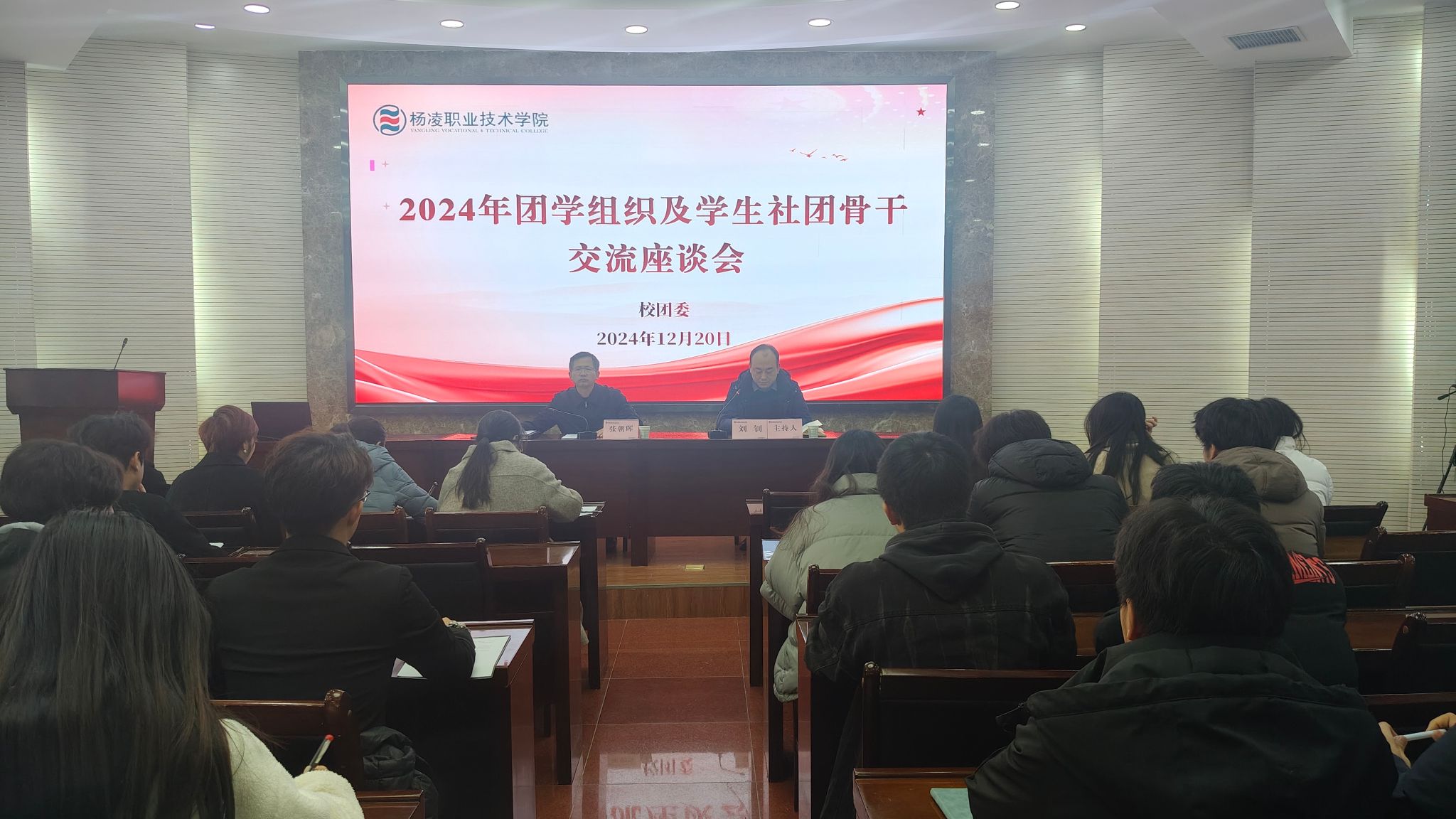 12月20日下午,学校召开2024年团学组织及学生社团骨干交流座谈会。副校长张朝晖出席会议并讲话。校团委负责人、各二级学院团委负责人、负责学生社团工作的辅导员、学生会主席团成员代表和学生社团负责人参加座谈会。