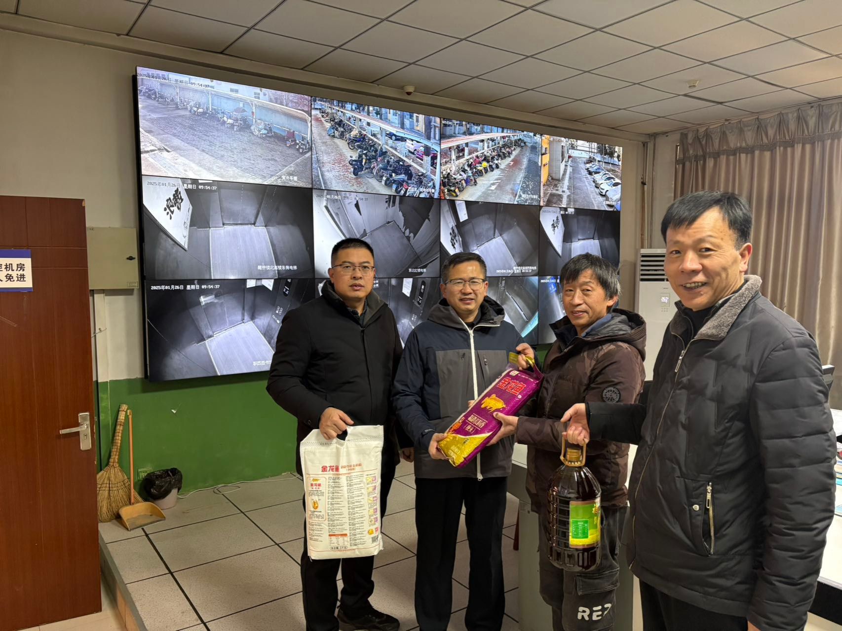 张朝晖一行先后深入三校区家属院、农林实训基地、监控室,对门卫值守、校园巡逻和视频监控管理等情况进行全面检查,详细了解安保人员的工作、生活、身体状况和实际困难,叮嘱他们注意用电安全、防寒保暖、劳逸结合,并代表学校对大家坚守工作岗位、时刻保障学校安全和服务师生的辛勤付出表示感谢,为他们送上新春祝福。