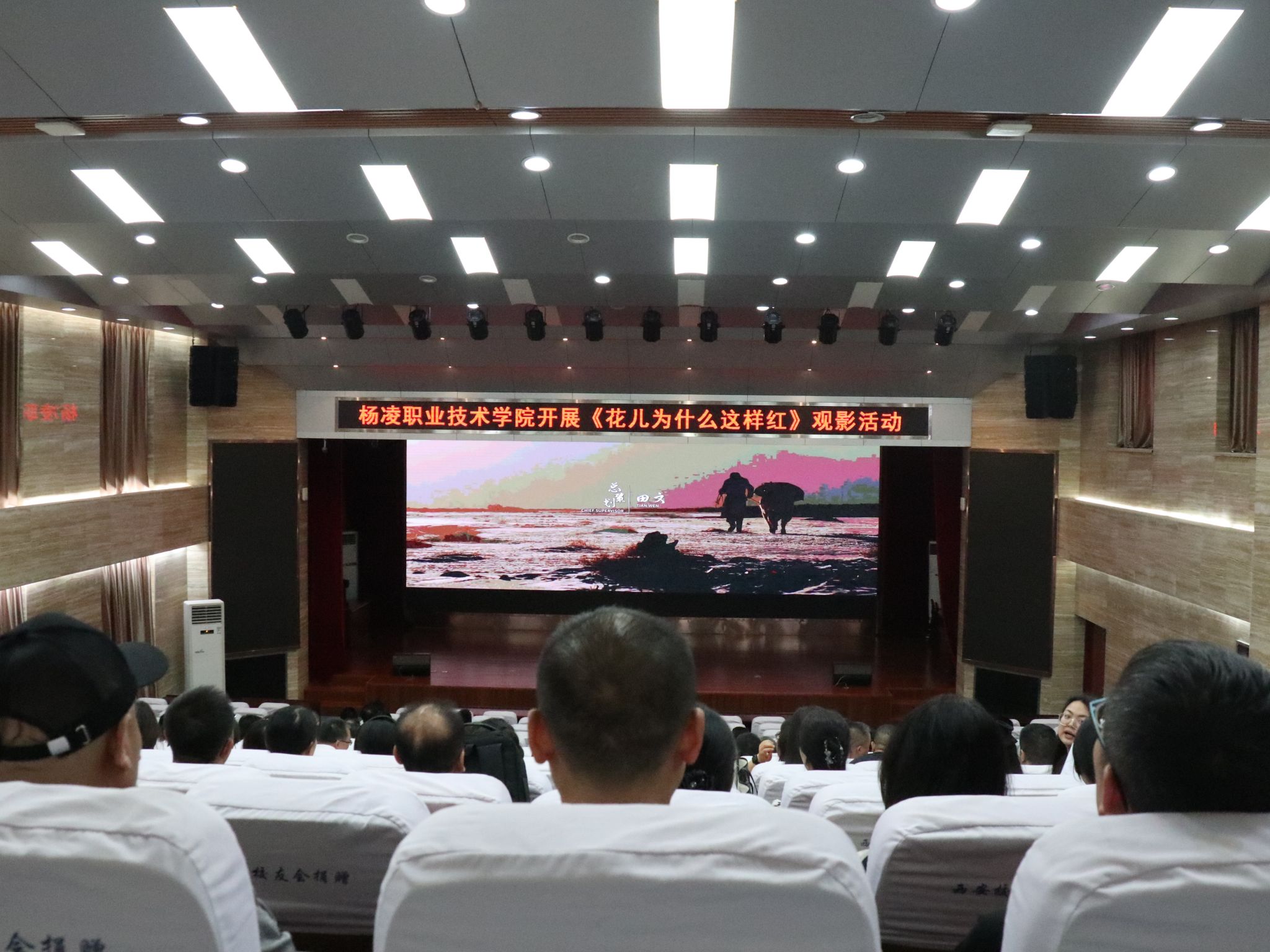 为弘扬爱国主义精神,激发全体教职工的爱国热情和使命担当, 5 月 12 日至 26 日,学校组织 1400 余名在职和离退休教职工集中观看了主旋律爱国主义题材电影《花儿为什么这样红》。