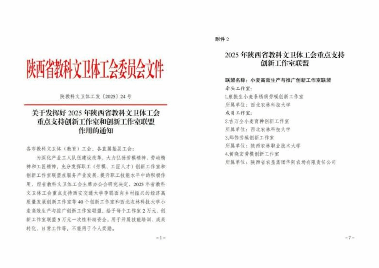 “郑伟创新工作室”此前已被列为省总工会“重点创新工作室”,此次入选,标志着其建设成果再获认可。作为西北农林科技大学康振生院士牵头组建的小麦高效生产与推广创新工作室联盟成员单位,“郑伟创新工作室”将充分发挥联盟平台优势,紧密对接前沿技术与职业本科教育实践,深入推进产学研协同创新,为服务乡村振兴战略和农业科技推广工作作出积极贡献。