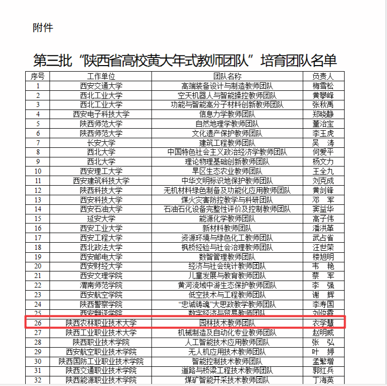 近日,省教育厅公布了第三批“陕西省高校黄大年式教师团队”培育团队名单,我校园林技术教师团队成功入选。