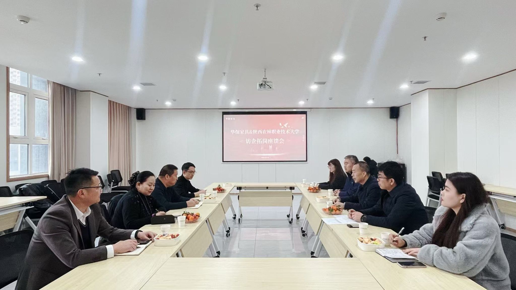 胡俊鹏一行先后参观了两家企业的环境监测实验室和全屋整装样板间,通过现场交流,清晰掌握企业运营模式、产品理念及人才需求标准。在西安华保家具有限责任公司,双方举行了“产教融合实训基地”挂牌仪式,标志校企合作进入实质阶段。