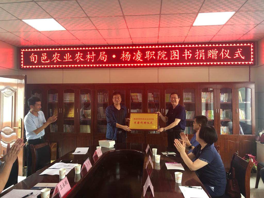 8月23日,学院党委副书记任得元,原党委委员、组织统战部长齐晓军,资产设备处、民盟主委药物与化工分院负责人等一行6人前往扶贫帮扶点旬邑县,向当地送去学院教职工捐献的科技、文化、卫生等类书籍共计5000余册,并为杨和平教授在旬邑设立的生猪养殖场进行了示范养殖基地挂牌仪式。 随后,任得元与旬邑县委常委、统战部部长王永刚等进行了座谈,就搭建校政平台,培养职业人才;拓宽职业农民学历教育,实现“扶贫、扶智、扶技”三扶联动,拓宽领域,培养职业人才;通过“学校+地方政府+企业”项目化运作,实现县域经济发展,在实现“一二三产业融合”的基础上最终实现“六产融合”乡村振兴等问题进行了深入交流。