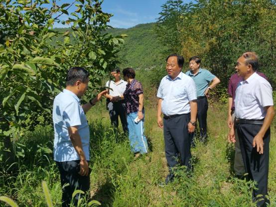 在麟游县副县长李婷、县农业农村局局长李乃兴陪同下,王周锁一行检查了学院中蜂养殖和优质高产核桃栽培产学研一体化示范基地,听取了村干部和扶贫办的汇报。2019年,在学院专家团队的指导参与下,150亩核桃示范园已初见成效,标准化中蜂养殖场已具雏形。