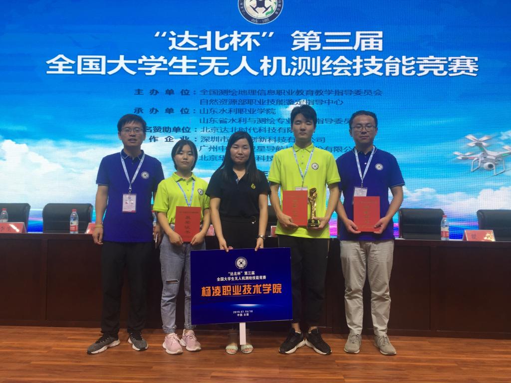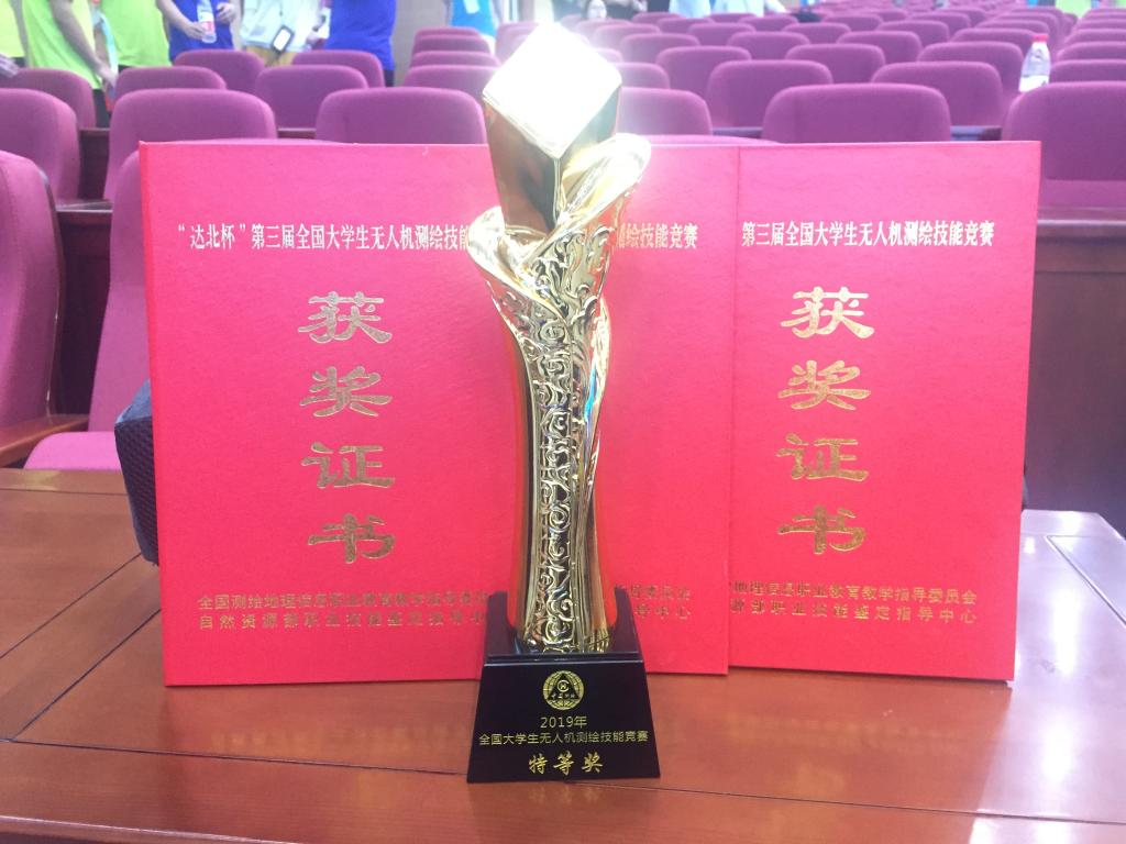 7月15日至18日,由全国测绘地理信息职业教育教学指导委员会主办、山东水利职业学院承办的“达北杯”第三届全国大学生无人机测绘技能竞赛在山东日照举行。经过激烈角逐,我院代表队以优异成绩荣获特等奖。