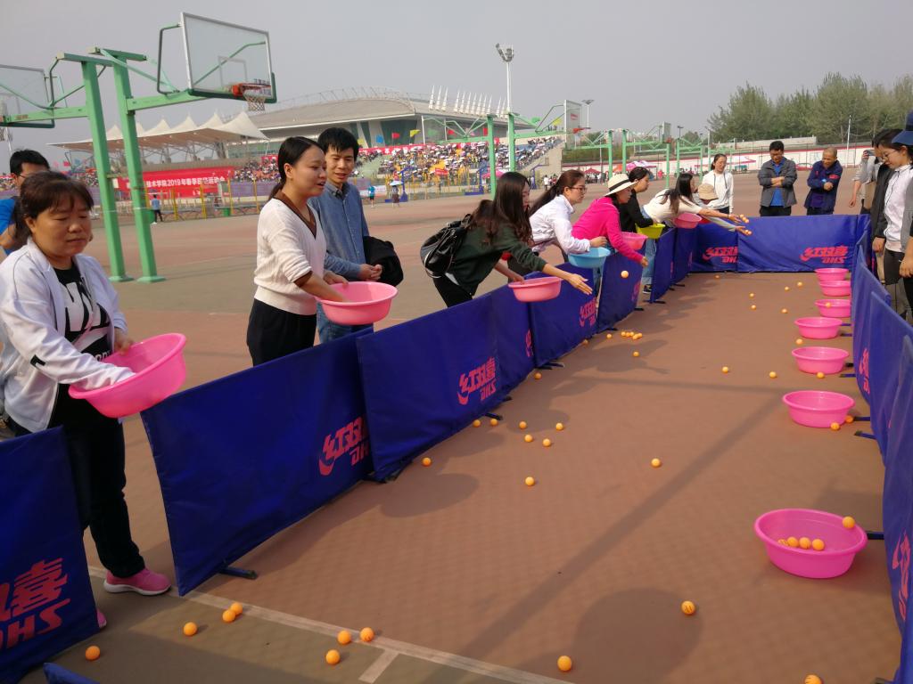 本次教职工趣味运动会共设5个项目,其中集体项目1个,为3分钟10人跳大绳;4个个人项目分别为1分钟踢毽子、1分钟跳绳、“筷”运乒乓球和乒乓球投篮。活动本着趣味性、参与性、娱乐性的目的,轻竞技,重参与,吸引了470余名教职工参加。