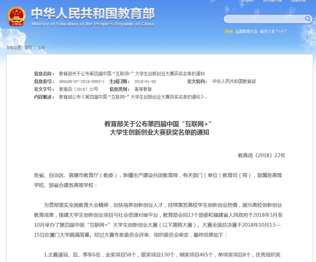 中国“互联网+”大学生创新创业大赛是高校深化创新创业教育改革的重要载体和平台,成为推动产学研用结合的关键纽带,是我国覆盖面最大、影响最广的全国大学生创新创业赛事。第四届大赛由教育部联合中央13个部委和福建省人民政府共同主办,项目分为创意组、初创组、成长组和就业型创业组。在中国“互联网+”大学生创新创业大赛中,不分高校类别,高职与本科、硕士、博士以及博士后同台竞技。我院继去年获得一枚国赛铜奖的基础上,2018年度再夺两枚铜奖,总成绩在省内高职院校位列第一,再次展现出我院创新创业教育改革取得的丰硕成果。
