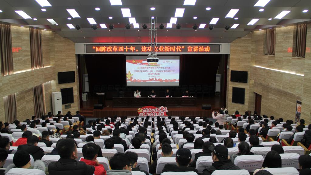 12月28日上午,陕西师范大学马克思主义学院新时代大学生理论宣讲团在我院思辨堂开展“回眸改革四十年,建功立业新时代”宣讲活动。陕师大马克思主义学院党委书记闫文浩、党委副书记屈桃,水利工程分院党总支负责人出席了此次宣讲活动,水利工程分院全体师生党员、入党积极分子、学生干部及各班学生代表共计260人参加了此次活动。