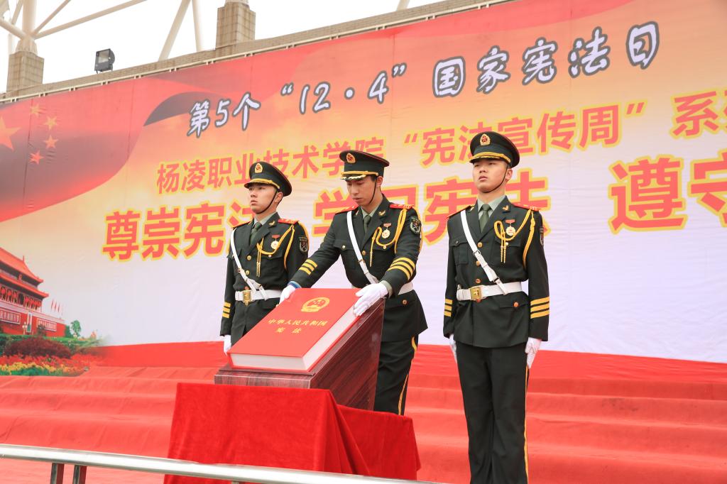 升起的五星红旗和雄壮的国歌声中学生代表王乐怡宣读了《“12.4国家宪法日”学习宪法倡议书》,全体师生目迎仪仗队护送宪法入场。随后,千名师生齐声朗诵《宪法》节选部分章节活动现场严肃而庄重千名师生在诵读中学习、在诵读中感悟通过诵读宪法呼吁全院师生增强宪法意识弘扬宪法精神加强宪法实施,全面推进依法治国。