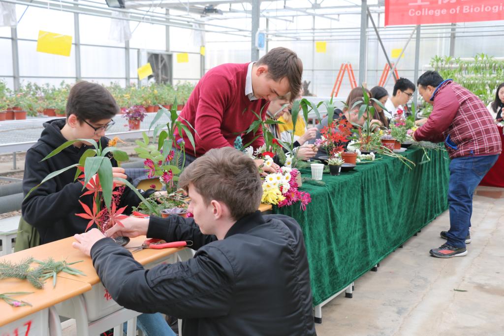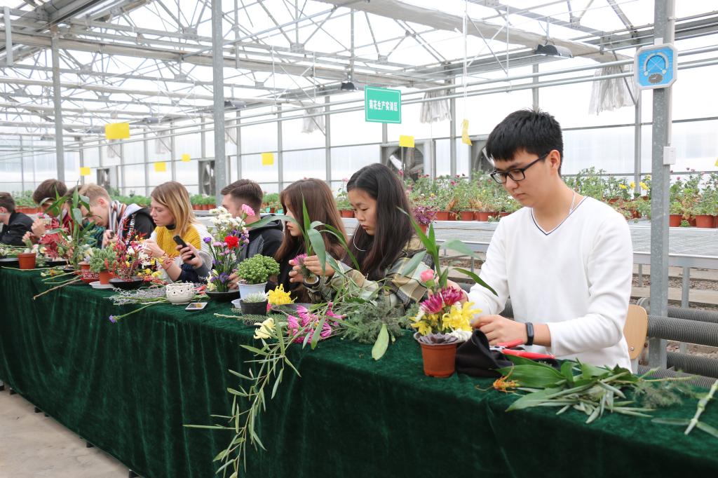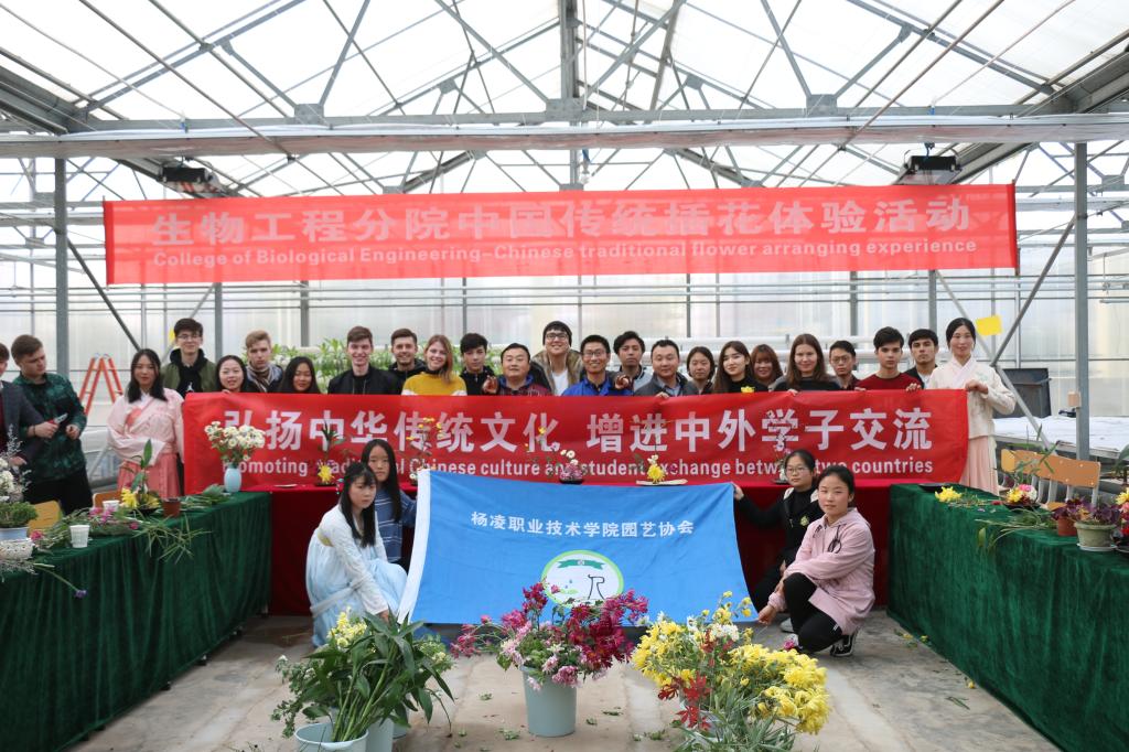 11月12日下午,生物工程分院园艺协会在农林实训中心举办了以“弘扬中华传统文化,增进中外学子交流”为主题的中国传统插花体验活动,邀请生物工程分院负责人、我院全体外国留学生和园艺协会会员等30余名中外师生参加了活动。