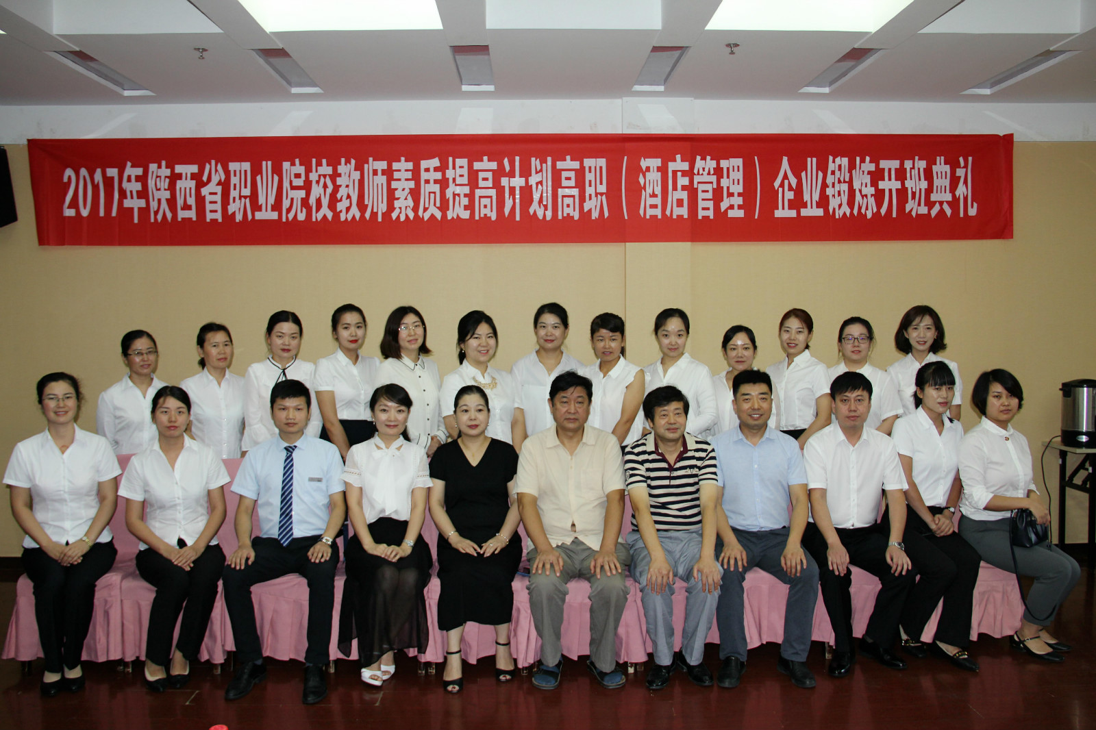 9月4日,由教育部、财政部、省教育厅主办,我院和陕西山水国际旅游文化公司、南方大酒店联合承办的“2017年职业院校教师素质提高计划国家级培训暨教师企业实践项目培训班”开班仪式在西安举行。我院副院长王晓地,以及我院继续教育与培训学院、两个校企单位负责人,来自陕西中高职23所职业院校的30名学员参加了开班仪式。