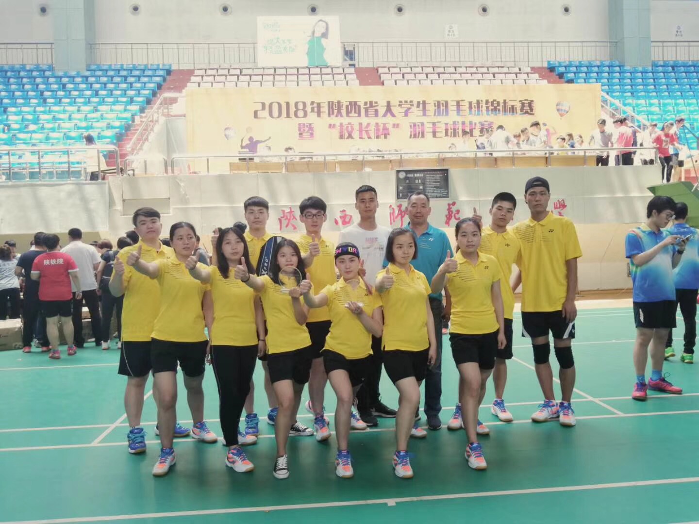 5月9日至12日,陕西省大学生羽毛球锦标赛暨“校长杯”比赛在陕西师范大学长安校区体育馆举行。我院叶鹏飞,段林科同学获得高职组男子双打冠军。并且我院获得丙组混合团体第三名的历史最佳战绩。本次比赛参赛队伍共有52支。本届比赛设混合团体,男子双打,混合双打比赛,其中大学生团体赛分为甲组、乙组和丙组三个组别。