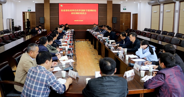 3月26日下午,农业部农业科技改革创新专题调研座谈会在西北农林科技大学召开。农业部、中国热带农业科学院、省农业厅相关领导,以及来自各市级农科所院负责人、体系首席科学家、西北农大,杨凌职院两所大学分管科研院长,科研、创新团队人员代表20余人参加了座谈会。