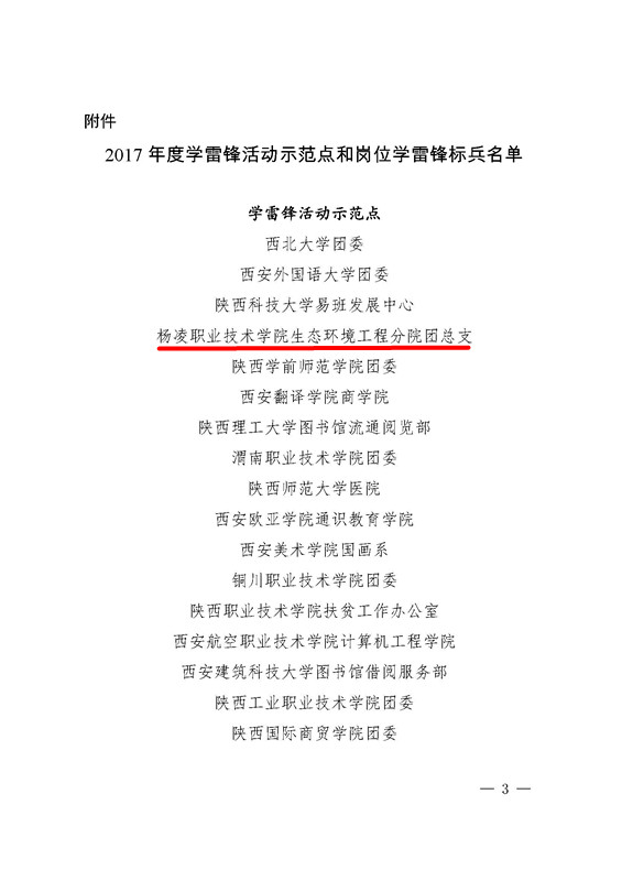 为进一步深化拓展岗位学雷锋活动,推进学雷锋活动常态化,省委高教工委开展了2017年度学雷锋活动示范点和岗位学雷锋标兵评选工作,经过专家评审、会议研究,共选出17个学雷锋活动示范点,12名岗位学雷锋标兵。我院生态环境工程分院团总支被评为2017年度学雷锋活动示范点之一。