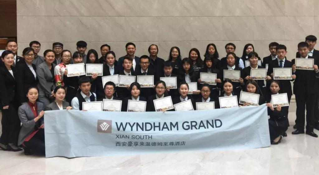 据了解,温德姆酒店管理学院成立于2017年7月,是我院与西安温德姆豪享来至尊酒店展开合作,进行现代学徒制试点,以现代学徒制培养为主的特色学院。一学期里,同学们在校企双方导师的培养下取得了很大的进步。