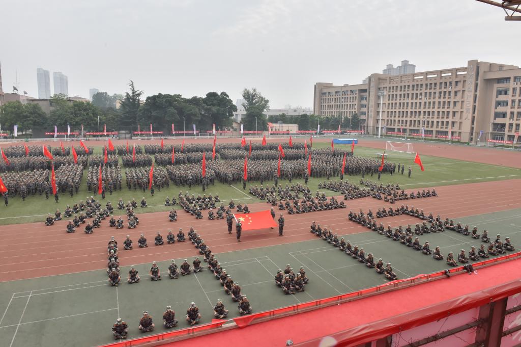 9时50分,南校区参加军训的3000余名新生停止训练,在南校区操场整齐列队。各连连旗迎风招展,各个方队雄壮威武,气势如虹。100余名新生组成“9.18”、“勿忘国耻”两个造型,四名旗手高擎国旗居于其中。10时整,防空警报响起,在场全体人员肃立默哀。警报结束后,军训教官带领与会师生郑重宣誓“勿忘国耻,我辈自强”,3000余人齐声高呼,响彻云霄。