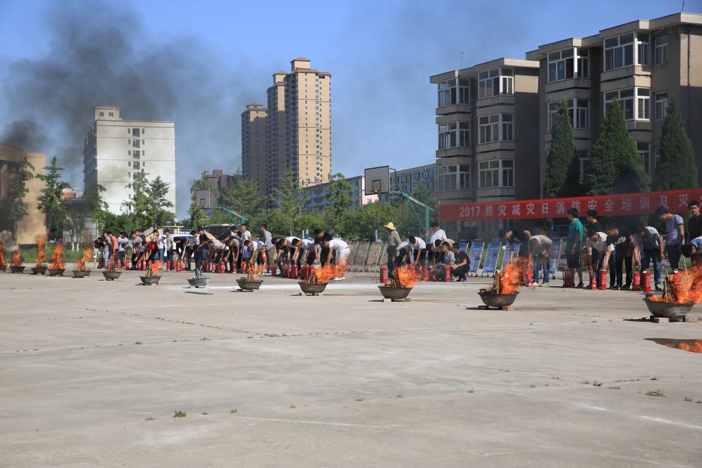 三是在南校区举办了“灭火演练”。在消防战士的示范和指导下,各部门的安全管理人员、学生代表分成若干小组,使用灭火器对明火进行扑救演练,现场共使用了100多具干粉灭火器。