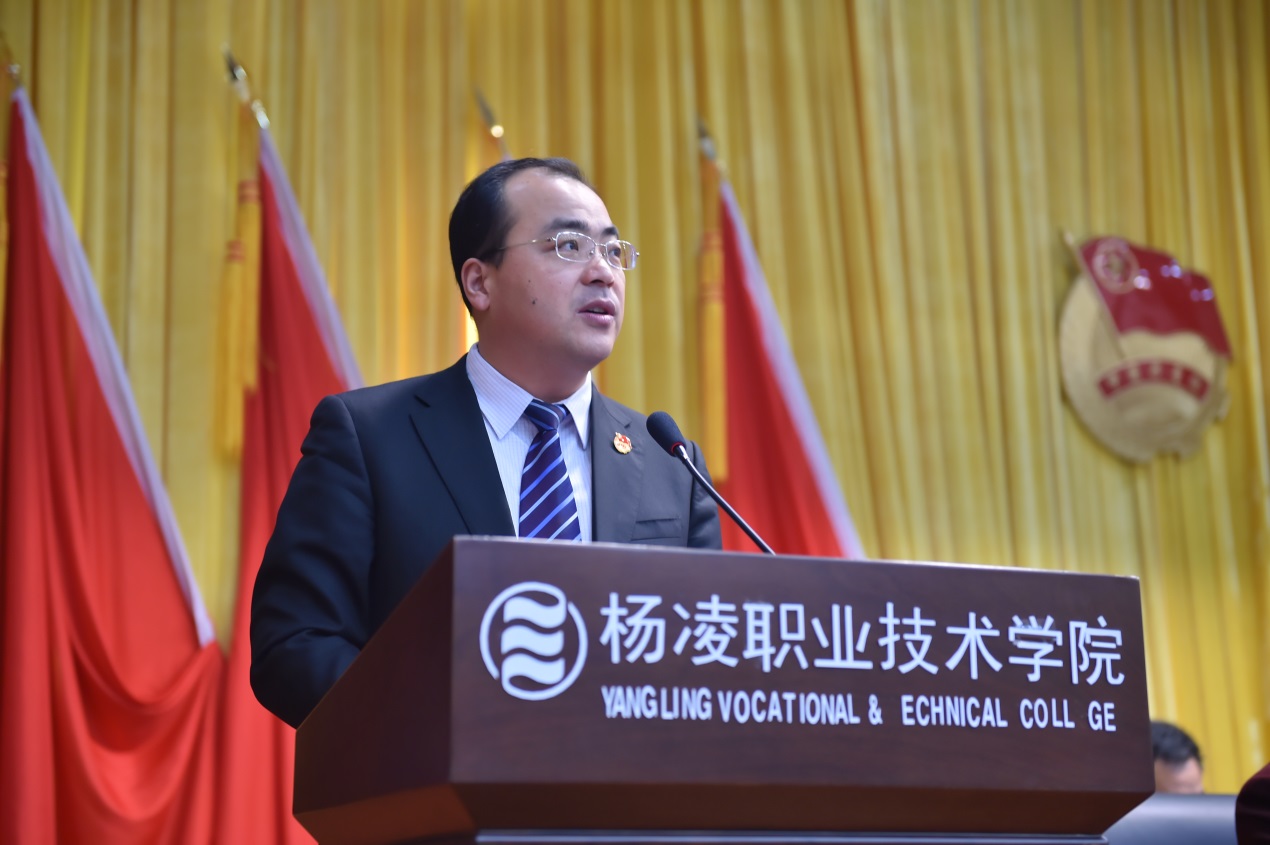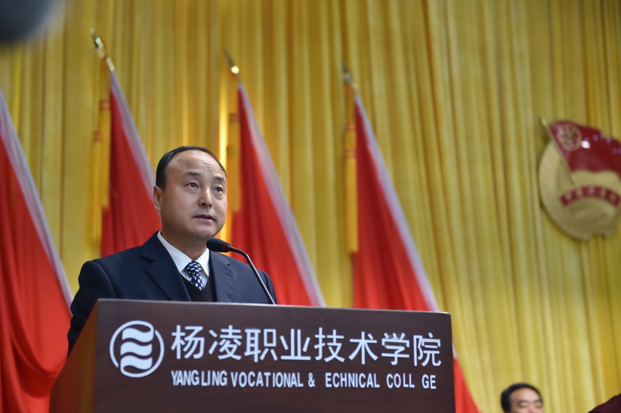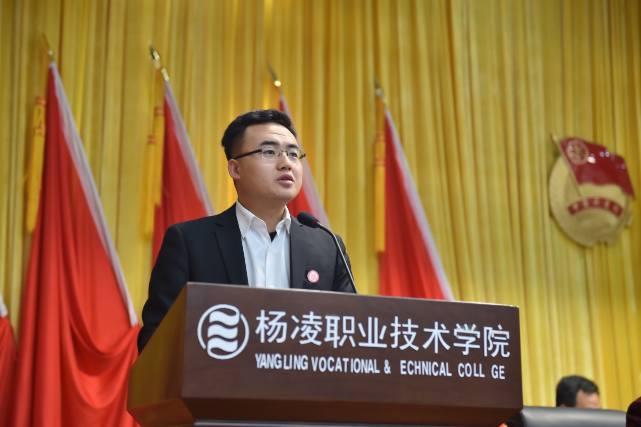 徐永胜在讲话中指出,近年来,在学院党委和团省委的正确领导下,学院各项办学事业取得了长足发展,社会声誉不断攀升。学院团委根植这块沃土,2014、2015年连续两次荣获“全国学校共青团研究成果二等奖”、先后4次荣获“全国高职高专院校党委书记论坛一等奖”,“全国学校共青团重点工作创新试点项目”、“全国学校共青团研究重点课题”等标志性的成果。团省委对于杨凌职业技术学院的共青团工作是满意的,对取得的成绩是点赞的,更是高度肯定的。同时,他向我院的广大团员青年、各级团学组织和团学干部提出了三点希望和要求。一是希望广大团员青年坚定理想,志存高远,让个人梦想在践行“中国梦”的道路上绽放光彩。二是希望广大团学干部勤奋学习,锤炼品格,让“工匠精神”在“追赶超越”中创造时代气质。三是希望各级团学组织不断进取,激发活力,让主动作为在适应团学工作“新常态”中实现价值。他号召我院各级团学组织、团学干部和广大团员青年在学院党委、团省委和省学联的坚强领导下,照准目标,矢志不渝,勇挑重担、开拓创新,在推动学校跨越式发展的征程中,再立新功,再创辉煌。