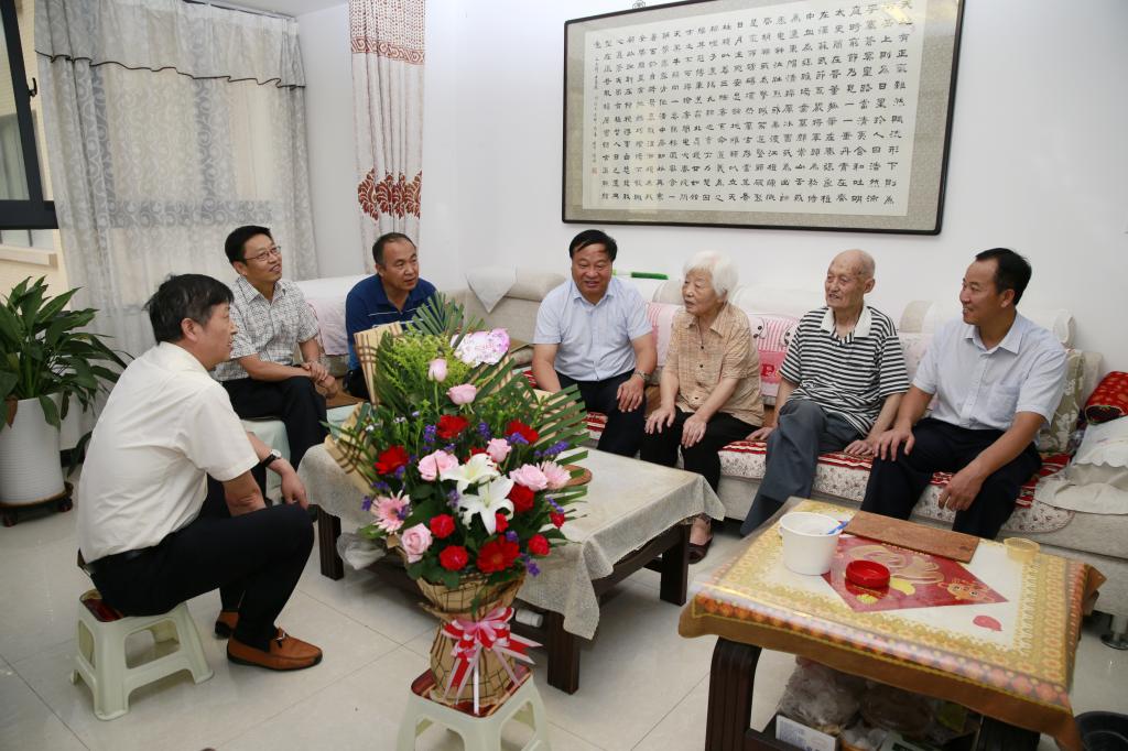 赵曼书记一行先后到李学舜、金德武老师家,献上鲜花,代表学院感谢他们以及所有离退体教师为学校做出的贡献,祝愿他们生活幸福,身体健康!