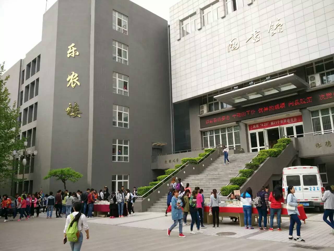 4月19日,图书与信息中心邀请西安市新华书店、陕西嘉汇汉唐书城在学院南校区和西校区举办为期两天的优秀图书优惠展销活动,拉开了我院2016年 “4·23世界读书日” 系列活动的序幕。