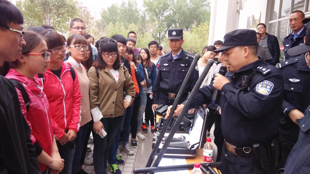 ——开展校园安全防范教育培训活动。4月14日下午,由杨凌区公安局和学院学生与保卫处共同组织,在西校区举行了校园安全防范教育培训活动。杨凌区公安局副局长霍建科、我院学生与保卫处负责同志、示范区公安局数十名干警、学院校卫队保安和西校区师生代表共计400余人参加。活动现场,公安干警对警务装备、管制刀具一一进行了展示;并结合在校大学生的身心特点,以案说法,紧紧围绕校内外活动安全、消防安全、防止有意伤害等方面内容进行了安全教育;还对校园保安人员进行了治安防范培训,展示和模拟演练了警务器材的使用方法。此外,师生们还结合日常生活中遇到的电信诈骗、抢劫、碰瓷等问题,与公安干警进行了现场交流。公安干警细致、详尽的讲解赢得了师生们由衷的敬佩和阵阵掌声,现场气氛热烈。