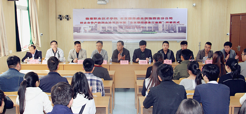 10月9日下午,生态环境工程分院校企合作协议签订暨“北京馨居盛业订单班”开班仪式在乐农楼三楼会议室举行。北京馨居盛业装饰公司总经理杨劼康、运营总监王琦、设计部总监王大雷、市场部经理孔程茜、首席设计师刘剑武、人事总监王家方,我院学保处、教务处负责人,生态分院领导班子全体、教师代表及订单班学生共50多人参加了开班仪式。开班仪式由生态分院党总支书记主持。