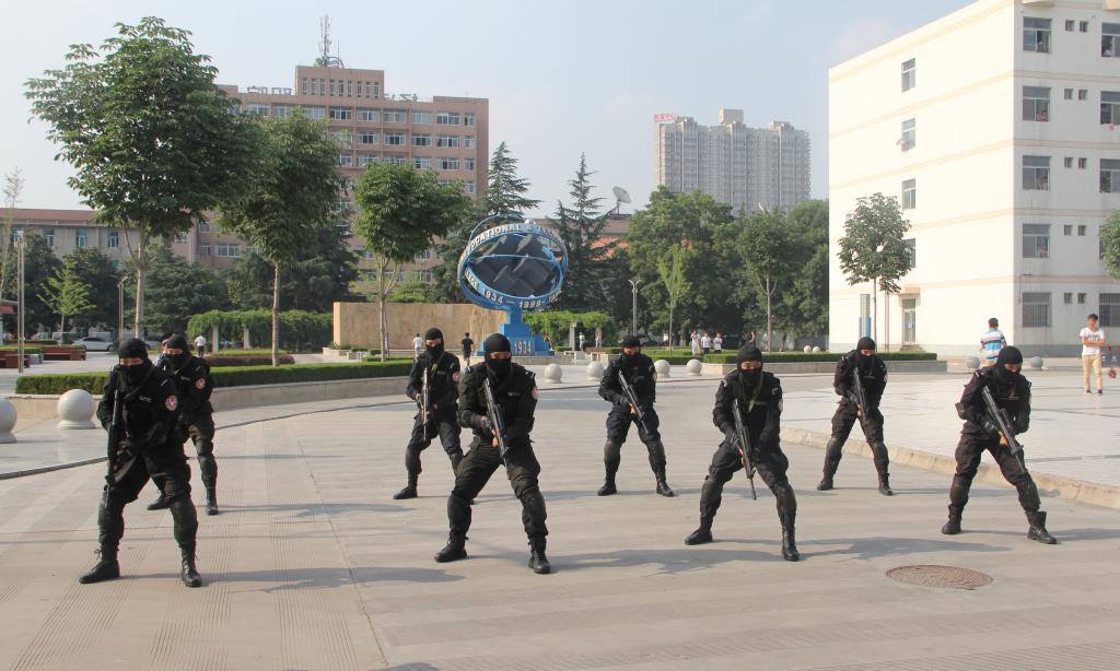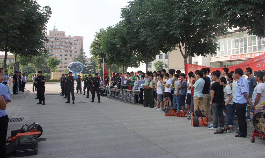 我院学保处组织学生百余人参加了宣传、演练活动。一是邀请专业人员在活动现场对学生作了专题培训;二是展示了防恐防爆相关器材并介绍了常见灭火器等消防器材使用技巧;三是现场进行了防恐防爆专业表演。
