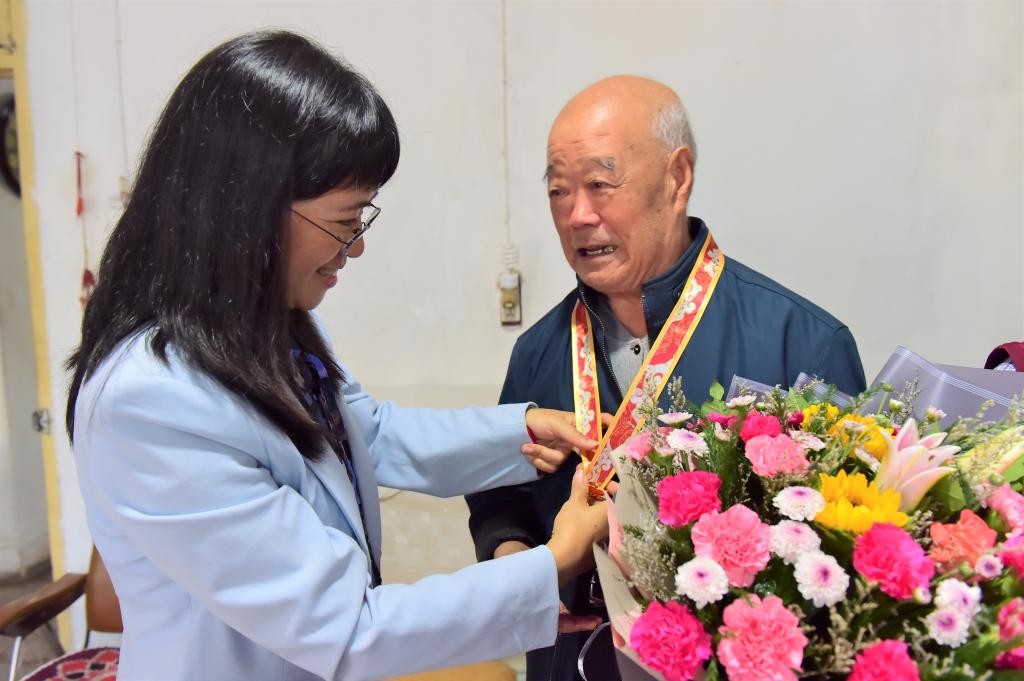 在离休干部雍家义、姚雷继、滕希贵、卢伟家中,陈宁向他们转达了党中央、国务院的关怀,将由中共中央、国务院、中央军委颁发的“庆祝中华人民共和国成立70周年纪念章”亲手为他们佩戴,向他们赠送了鲜花,并由衷表示对他们的崇高敬意和节日的祝贺!