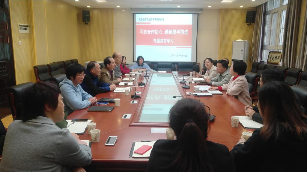 10月11日下午,民盟杨凌职业技术学院委员会召开“不忘合作初心,继续携手前进”专题教育学习会议。民盟杨凌职业技术学院委员会领导班子成员、各支部委员及机关干部近20余人参加会议。陕西省政协委员、民盟杨凌职业技术学院主委刘玉凤主持会议。