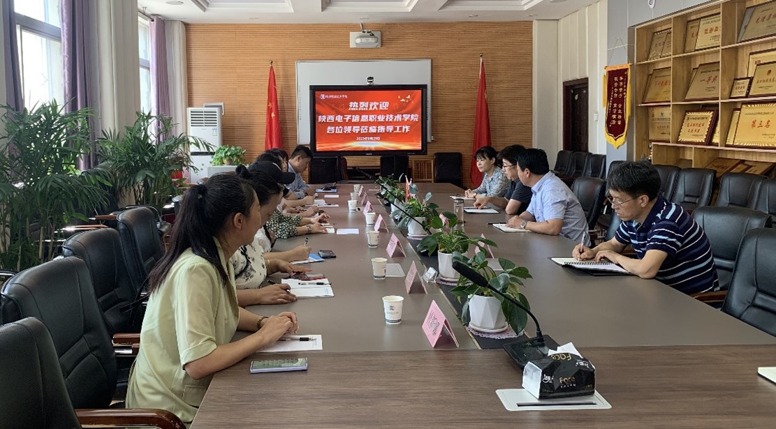 8月29日下午,陕西电子信息职业技术学院副校长石晓英、教务处处长朱蓉容、经济管理系主任马平靖等一行7人来校调研交流,经济与贸易学院负责人及骨干教师陪同调研。