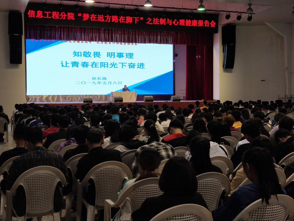 5月8日晚,信息工程分院全体2018级同学齐聚南校区活动中心,聆听了一场生动法制与心理健康报告。