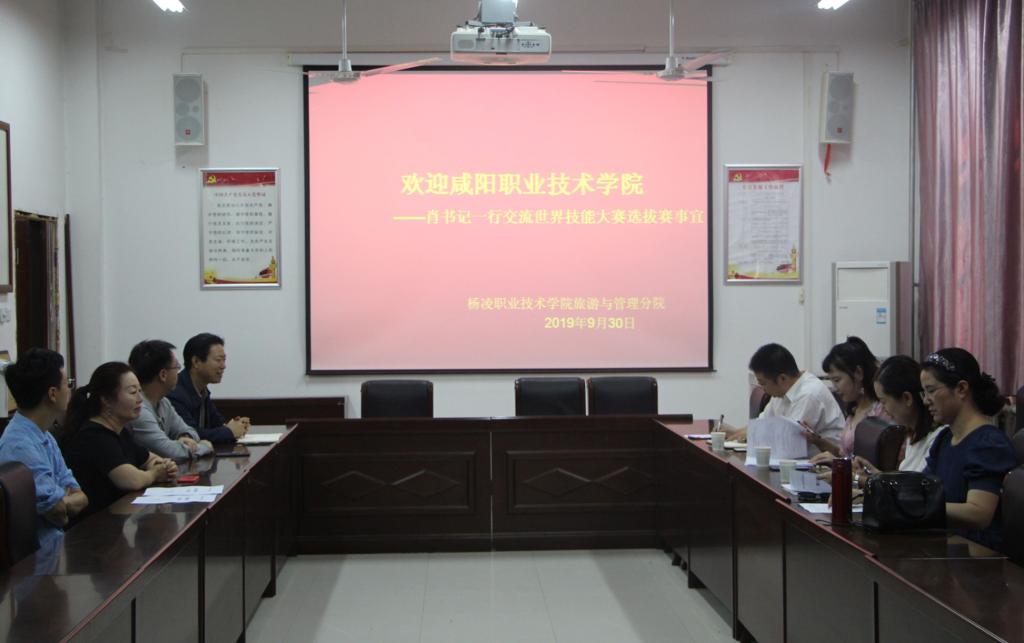 旅游与管理分院负责人代表学院对咸阳职业技术学院财经学院来我院交流学习表示欢迎,双方就第45届世界技能大赛竞赛规划、操作流程等内容作了深入交流。会后,来访人员参观了我院旅游实训综合中心,了解实践教学情况。