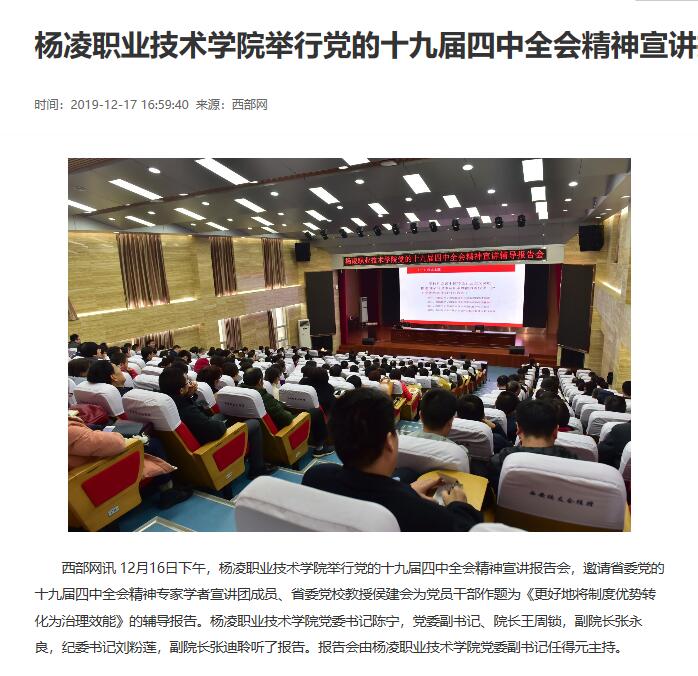 杨凌职业技术学院副科级以上干部,副高以上专任教师共240余人参加了报告会。