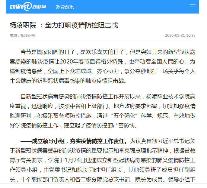【西部网】杨凌职院 :全力打响疫情防控阻击战