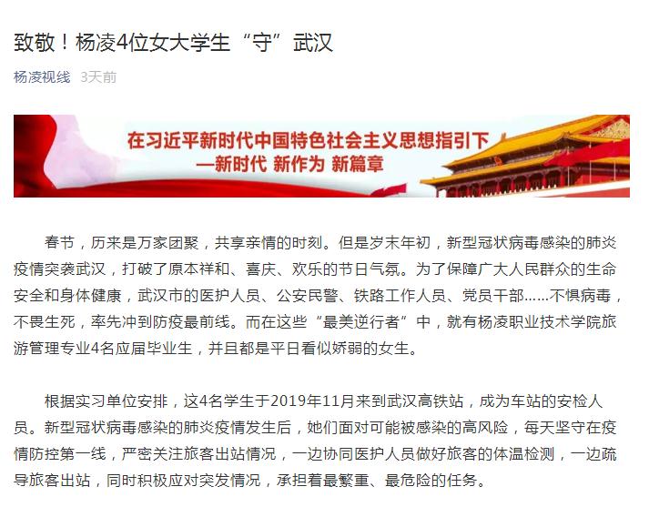 【杨凌融媒体中心】致敬!杨凌4位女大学生“守”武汉