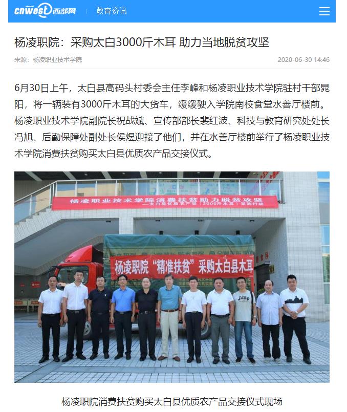 【西部网】杨凌职院:采购太白3000斤木耳 助力当地脱贫攻坚