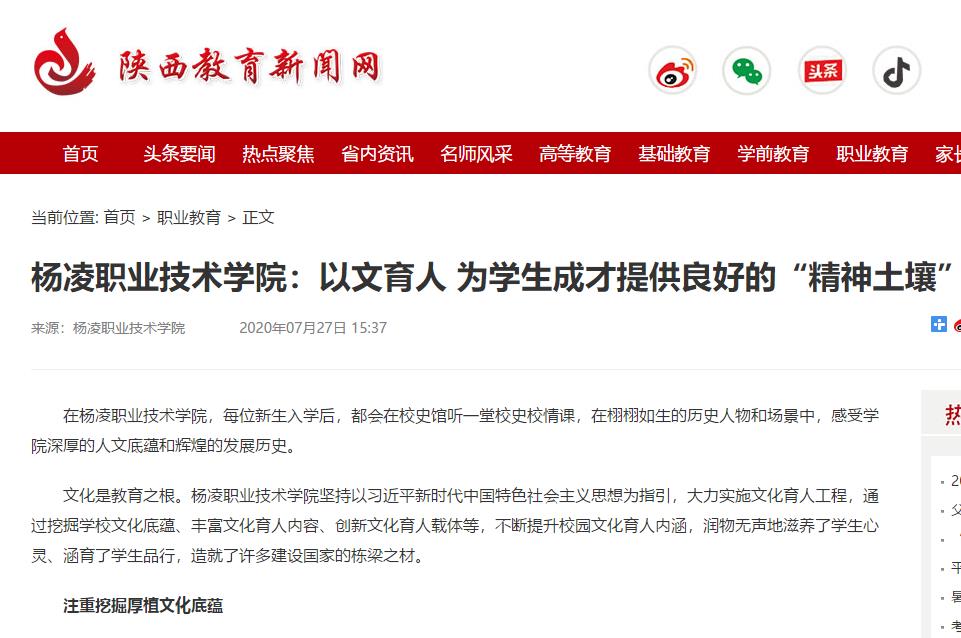 【陕西教育新闻网】杨凌职业技术学院:以文育人 为学生成才提供良好的“精神土壤”