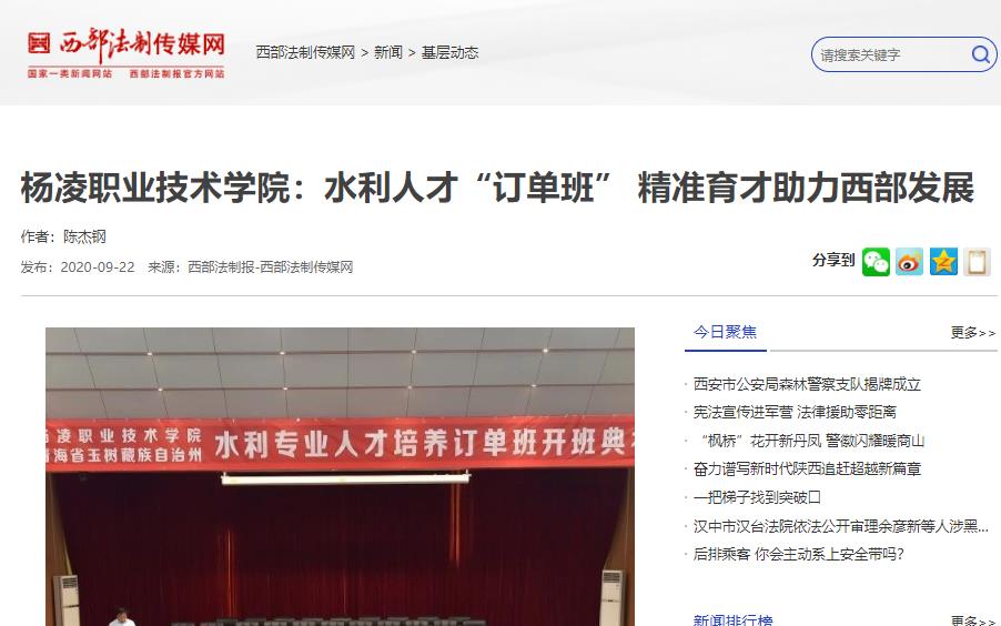 杨凌职业技术学院与青海省人民政府签订订单班协议,每年为当地足向培养水利专业人才,自2016年起连续三年招收40名玉树州、40名果洛州、40名黄南州学生来院学习水利知识和技术。对于这120名学生,学院不仅减免其学费,还根据地区实际,在课程设置、生活安排、学习方式上给予了特别安排。三年学成,这些学生将直接回到当地水利部门上班,不用像其他毕业生一样忙着找工作。